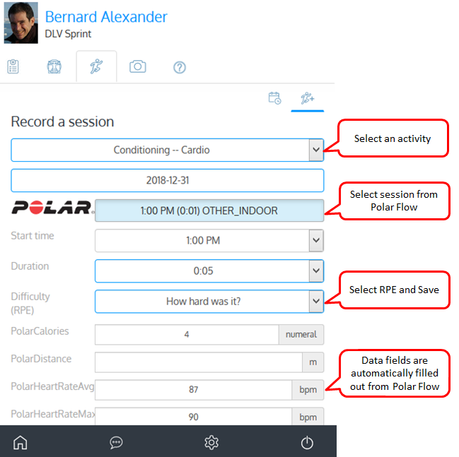 - Enter the other data as normal (RPE, enjoyment, etc).