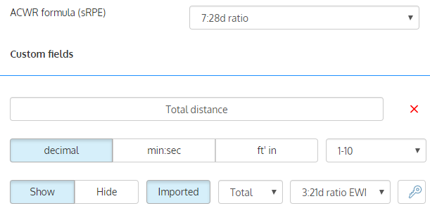 Note: When you add custom fields to the dashboard, ACWR is calculated using the same approach.