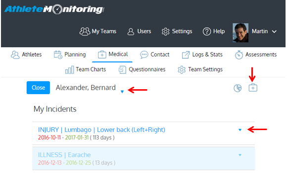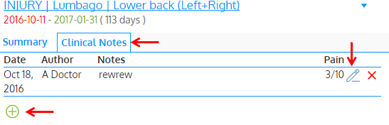 Enter the note in SOAP format, select pain levels, sensations, tasks, etc. and Save. You can edit the list of body areas or task options, by opening the School / Group preferences->Injuries section.